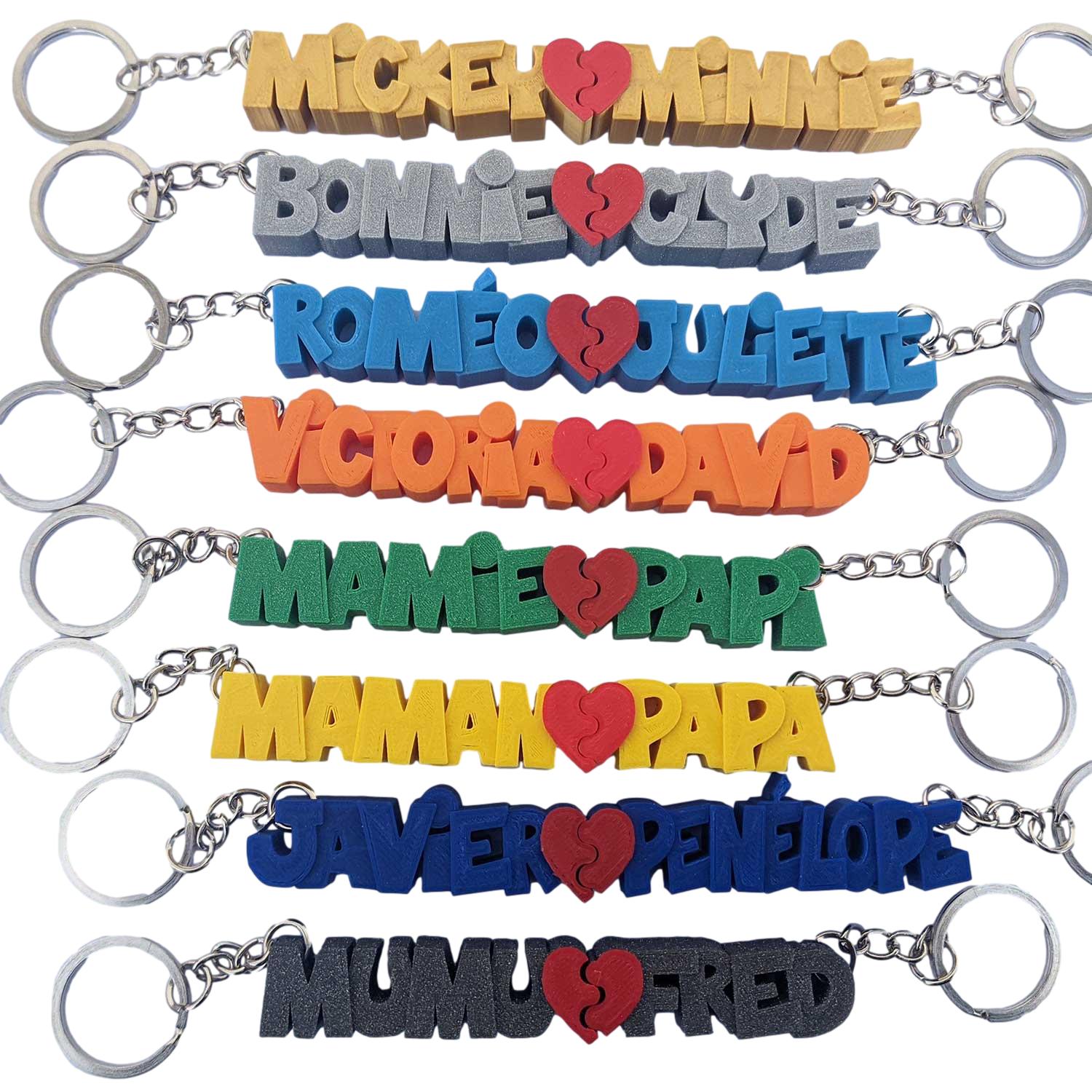 Chaque porte-clés présente en effet un prénom, ainsi que la moitié d'un cœur.