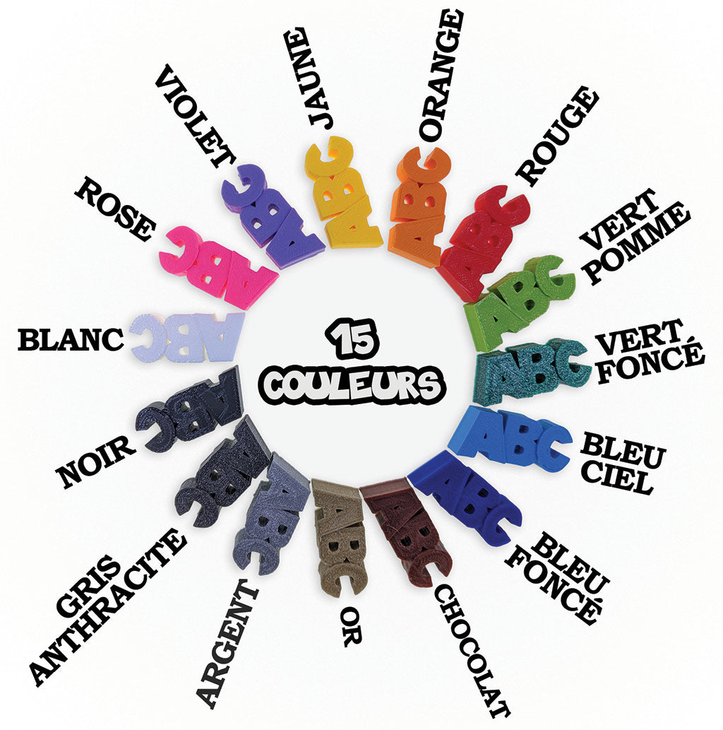 Au moment de passer commande, il vous suffira d'indiquer un mot (prénom, une date, un lieu…) et de choisir une couleur.